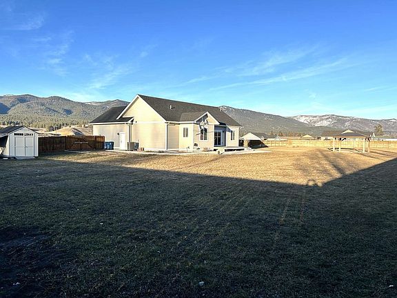 Beautiful move-in ready 3 bed, 2 bath ranch style home on 1 acre. Very well maintained with gorgeous open kitchen containing stainless steel appliances, plenty of cabinets, pantry, large island, and adjoining dining area. Spacious living room has vaulted ceilings, large windows, and stunning mountain views. 3 spacious bedrooms including a primary with walk-in closet & ensuite bathroom. Central AC, heat pump, high ceilings & laundry area with brand new washer and dryer. Attached double garage with electric heater and side entrance to the fully fenced yard and easily accessed storage shed complete with included riding lawn mower. Wonderfully large yard fully fenced with automatic sprinklers, deck, additional patio and gazebo for entertaining. Great location in premier school district!