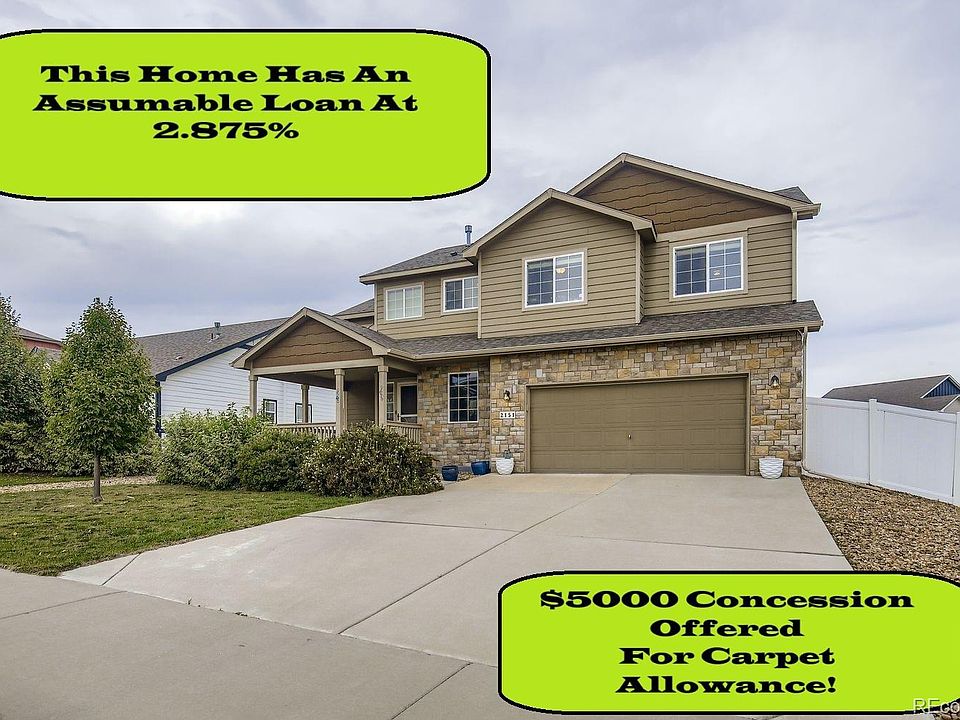 Welcome to Homestead Heights, a desirable community in Greeley! This home features a 3 car garage and backs to green space with no neighbors immediately behind. Inside you will find a open concept with spacious family-room and vaulted ceilings. The kitchen features all stainless appliances and opens to the family room, perfect for entertaining. Upstairs you will find a very spacious primary bedroom with ceiling fan, large walk-in closet and 5-piece bath making this the perfect en suite. The second level has 2 additional spacious secondary bedrooms that can be used as an office or guest rooms. The basement is fully finished with bathroom and standing shower. The basement has ample additional storage to be utilized. The space is perfect for a game room, second living/family room, or could be the perfect guest suite or large conforming bedroom. The backyard has a large deck and is waiting for a garden-loving owner to add their signature or refresh the landscaping. The home is priced competitively below market value and showings are limited, so check it out before an offer deadline is set. Click the Virtual Tour link to view the 3D walk-through. Discounted rate options and no lender fee future refinancing may be available for qualified buyers of this home. Current interest rate may be assumable.