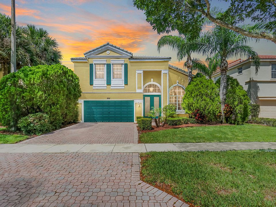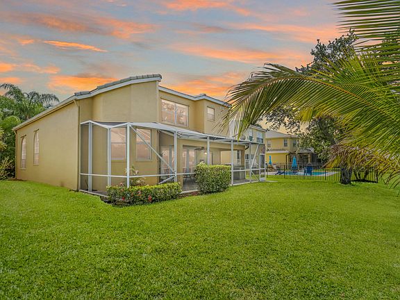 Welcome to Wellington's prestigious and premier resort style community Olympia! This gorgeous 4BR/3BA lakefront Cambria model estate home is offered in the stunning East Village. The entire yard is a custom lakefront tropical retreat with no rear neighbor, and gorgeous lakefront views. As you enter the estate you are greeted with gorgeous double door entry to a dramatic 20 foot vaulted ceilings and a wow factor staircase showcasing wood balusters. The interior of the home is truly beautiful and light and bright throughout, with lake views from nearly every room. This home is designed for entertaining with indoor and outdoor space becoming one. Main floor includes a bedroom downstairs with full bathroom on the main floor as well. All with pristine views of your tropical paradise backyard covered retreat. The kitchen has stainless steel appliances, gorgeous wood cabinets, and the large island is perfect for pasta making and entertaining. This gorgeous kitchen is a dream for any chef. The entire back of the home is easily accessed by multiple sliders from the living room or family room to be able to enjoy your outdoor paradise as well with ease. Owner's Suite is dreamy and large with an expansive sitting area or office space. Walk in closet with closet built ins. Large en suite bathroom with separate sink areas, soaking tub, and standing shower with neutral tiling. Additional area inside the master that could easily be used as office, with a large balcony with French door to sit outside and enjoy your coffee in the morning or a glass of wine overlooking the lake at sunset. The volume ceilings are a wonderful addition. There are two additional upstairs bedrooms. Both large bedrooms. Laundry room is on the main floor. Huge yard large enough for a pool and beautiful mature palm trees for a relaxing oasis vibe. Covered balcony provides a huge area for relaxing entertaining in the shade. This beautiful home is ready for a new family to love! Olympia is Wellington's premier resort style community that is unparalleled in amenities and true bustling community feel, and this home is the closest village to the incredible resort style clubhouse amenities. The magnificent and gigantic zero entry community pool is truly the best community or resort pool I have ever seen and includes private cabanas and an exciting splash pad for the kids. The clubhouse also includes indoor and outdoor basketball courts, pickleball court, volleyball court, tennis courts, an incredibly impressive upscale clubhouse, impressive fitness center, and an entirely renovated brand new huge and fun playground complete with astroturf and tons of fun equipment for the kids. Low HOA dues include high speed ATT internet, four manned security entrances, 24 hour rovers, and more. Such a wonderful community feel here. The home is located within walking distance to the clubhouse, restaurants, and shopping. Easton Village is a gorgeous and sought after section in Olympia. Did I mention the top A rated Wellington schools? Come see this home, it is as gorgeous in person as it is in these photos. You deserve to live the Olympia lifestyle, now it is time to make your dream a reality.