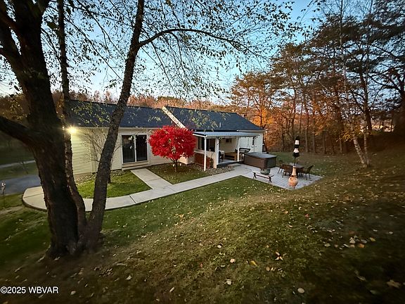 Welcome home to this beautifully maintained raised ranch on a picturesque 1 acre lot in Old Lycoming Township. Enjoy peaceful country living just 3.5 miles from town! This inviting home features a spacious open-concept living, dining, and kitchen area perfect for gatherings and everyday comfort. Step outside to relax on the covered porch, unwind in the hot tub on the patio, or cozy up by the fireplace on cool evenings. Several recent updates make this home move in ready, including a new roof, gutters, downspouts and soffit (2024), new appliances, and a new water heater (2025). The lower level offers a welcoming family room, laundry room, and a one-car garage with a hobby room for extra flexibility. Natural gas heat and central air keep you comfortable year-round.