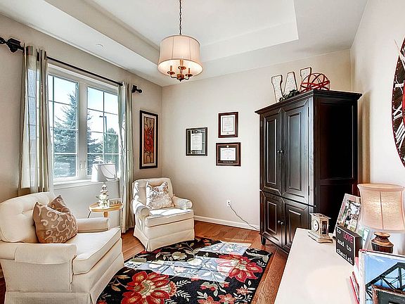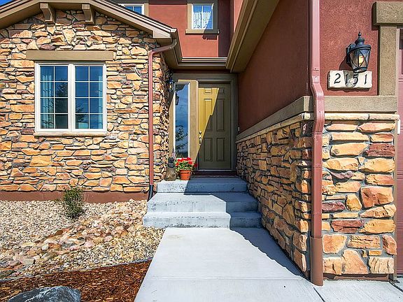 Welcome Home to maintenance free living! Extensive mountain and Castle Rock views! This two-story home boasts a luxurious owner's suite with double shower and massive walk-in closet. Positioned above the 13th Fairway of the Plum Creek Golf Course, you are protected by vast pine and scrub oak trees. Private study, formal dining room with butler pantry and wine fridge, walk-in pantry, Chef's kitchen with large kitchen island, nook, massive great room.....This home has it all! Intricate details such as stone wall and fireplace, new hickory hardwood flooring, ten foot ceilings and eight foot doors, quartz counters throughout entire home, custom banister, custom draperies, new landscaping. Don't miss the opportunity to live in South Castle Rock, with quick access to 25, downtown shops/restaurants, the DC Fairgounds and parks/trails.