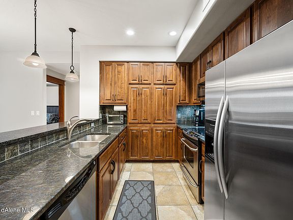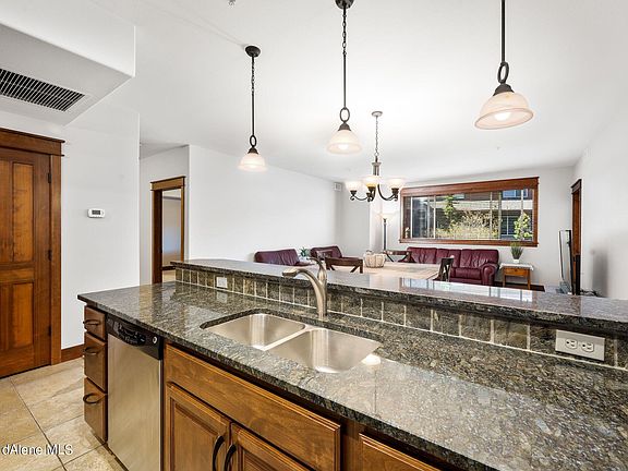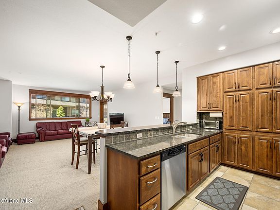 This Coeur d'Alene Riverstone condo offers 1403 sq ft of single level living space with 2 beds, 2 baths, a den, and laundry room. Fresh interior paint, new carpet, and tranquil common greenspace backyard create a cozy and inviting feel. Heated underground parking provides protection from the elements, and the location is just 3 miles from downtown. The live-work-play community provides outdoor concerts and farmers markets all summer long. With spaciousness, convenience, and serenity, this condo is a perfect place to call home. Listing agent is the owner.
