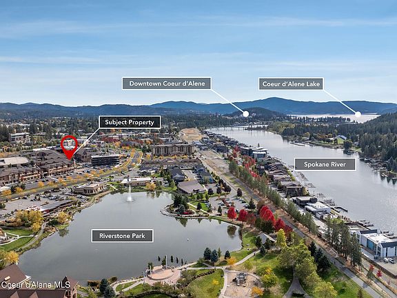 Immaculate & Fully Furnished Riverstone Condo with Breathtaking Mountain & Lake Views! Here is the chance to own a corner unit in the highly sought-after 2151 building above Culinary Stone & The Wellness Bar offering an oversized private patio perfect for capturing the stunning sunsets and expansive views. 2 bedrooms, 2 bathrooms, 1065sqft, travertine & tile, A/C, spacious master suite with large walk-in shower, soaking tub and his & hers closets, solid core doors, gorgeous kitchen with SS appliances, granite, upgraded tile backsplash & breakfast bar seating, convenient elevator access, 2 parking spots in the secure underground heated parking garage, extra storage locker, access to the oversized Pavilion with built-in BBQ's, seating area & gas firepit. Enjoy all that Riverstone has to offer with this turnkey, fully furnished condo located steps from the area's finest shopping, dining & entertainment, the Spokane River, Centennial Trail, Downtown Coeur d'Alene, Lake CDA & more!