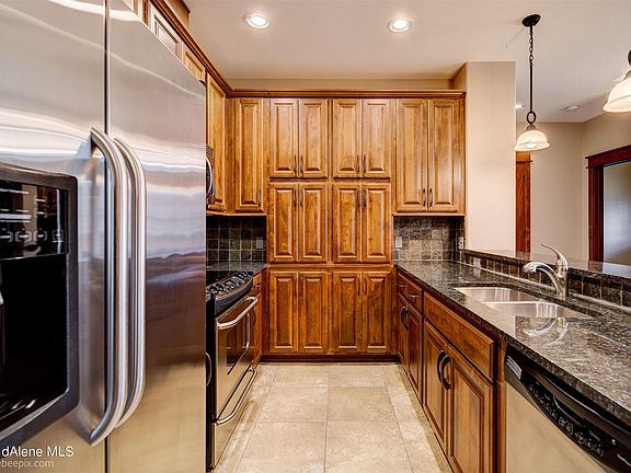 Riverstone Condo on the 3rd floor! 2 bedroom, 2 bath condo with open living area and vaulted ceilings. Covered deck overlooking courtyard for peace and tranquility. The Riverstone neighborhood in Coeur d'Alene lifestyle is one-of-a-kind with entertainment, dining, shopping, walking/biking trails, and more right outside your front door! Community terrace with BBQ, fire pit and patio seating. 2 parking spaces and storage area in heated/secured underground garage.