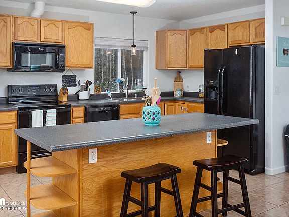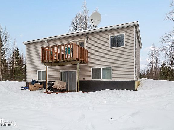 Lots of room inside! Open layout great for entertaining. Three bedrooms PLUS bonus room; Tons of natural light through french doors; two living room/family room areas facing private wooded lot; Great for family movie nights! No carpet throughout; Enjoy outdoor family entertaining w/ fire-pit, sandbox and swing set. In a quiet neighborhood in a culdesac. Take only two turns to get to Parks Hwy.