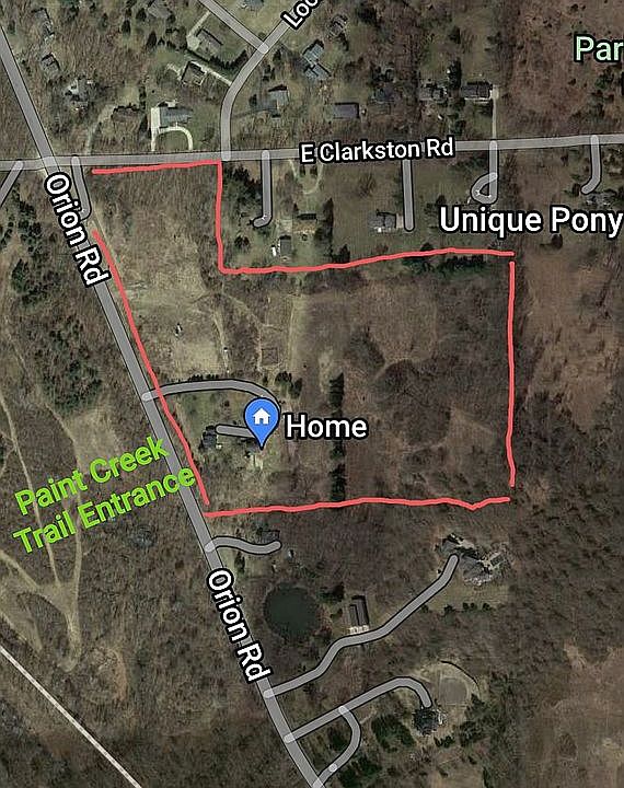 Newly! DIRECT ACCESS to Paint Creek Trail spur which is connected to over 2000 miles of trails across Michigan.... ! Its One of a kind! Private, secluded with various elevations to build your Dream Home on approx. 22 acres $165,000 per acre . Property comes with a 1910 Farm house updated electrical plumbing new appliances new furnace new 75gal water heater 27 stage water filtration system new roof steam shower new interior solid doors new solid hardware new toilets all new light solid brass fixtures new kitchen all new tile throughout home remodeled 2018 with large 3 car large Garage & Barn 40x60 with additional heated garage , full basement in barn , wine cellar used for gatherings , not historical 3 deer hunting blinds, currently medium and some low density with all parcels. Property lies on the S E corner of Orion rd & Clarkston Could be DEVELOPED split parcel to build High End subdivision. Approximately 9 mins from Downtown Rochester 3 mins from Lake Orion . $165,000.00 per acre. Not offering any splits , One property 22 acres.