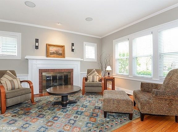 Charming Craftsman-style 4-bedroom on welcoming tree-lined street. Warm interior features hardwood floors, two fireplaces, large addition in rear with family room open to breakfast nook, kitchen and welcoming patio. Spacious second floor master suite with vaulted ceilings, walk-in closet and roomy bath with Jacuzzi and walk-in shower. Three additional bedrooms and bath on 2nd floor. Finished basement plus professionally landscaped, fenced lot greatly expand this home's living space. Many newer Pella windows, updated mechanicals plus a record of routine maintenance mean hassle-free living for next lucky owner.