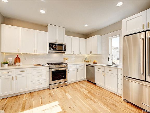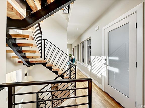 Now available with construction completed January of 2023! Modern 4 bed/4 bath new construction 1/2 duplex (1 unit 2 duplexes, 4 total units) in Denver's up and coming University Hills North neighborhood. 4 stories of functional living space with a huge west facing rooftop balcony. Main floor features a large kitchen with pantry, deluxe quartz countertops, soft-close cabinetry, tile backsplash, under-cabinet lighting, stainless appliances including gas range, & more. Custom monorail staircase with floating wood stair treads. Living room with solid oak hardwoods with french doors to back patio & private yard. 2nd floor boasts primary suite and secondary suite along with laundry room large enough for side by side w/d. Primary bedroom w/large closet & ensuite bath has a double vanity and huge shower with mountain views. 3rd floor features a thrid bedroom with ensuite plus huge loft with unbelievable views and natural light, opening up to a large rooftop deck with stunning views. Basement features rec room and a 4th bedroom. Entire main floor has SOLID oak hardwood floors. Main floor 1/2 bath with modern tile accent wall. Modern finishes throughout. Back yard patio. Sprinkler system in back yard. 2 full mechanical systems for better temp control. High efficiency furnaces & water heater. Pre-wired for TV in bedrooms, living room and 3rd floor loft. Private 1 car garage with electric vehicle ready wiring & a smart/wifi opener. HOA (a party wall agreement is in place). 1/2 block to Colorado Light rail station. Close to everything. I-25 access, DU, Platt Park/Wash Park and more. This neighborhood is rapidly turning over with over 9 projects either approved or in approval process with the city. On the street will be a 14 unit NEW townhome project, 84-unit apartment building on the corner of Evans & Bellaire, new mixed use (retail, hotel, condos) at the corner of Colorado & Evans, 4 new 4-plex projects between Birch, Bellaire & Ash. Don't miss this amazing opportunity!
