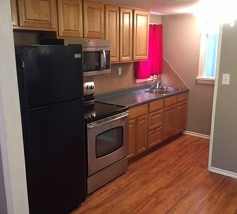 Small, Cute one bedroom, one bath for rent. Perfect for a single person. Updated with Black refrigerator, stainless range, microwave, newer cabinets, sink, fixtures and flooring. Bathroom is also updated. Has a nice covered porch. 12 month lease. Tenant pays all utilities. We do require 40.00 application and background check. Rent is $485.00 and deposit is $400.00. Tenant pays all utilities. No Pets, $40.00 application fee, No past evictions