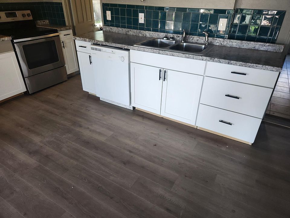 Laminate flooring, fenced yard, washer and dryer hookups.