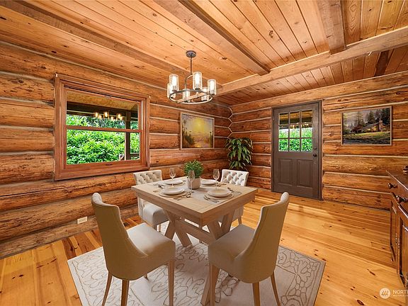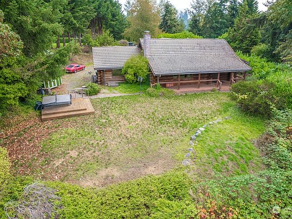 Home lives like a 3 bedroom! Situated on over 2 acres w/ fruit trees, level pasture/dog run, valley VIEW, and tons of privacy. Log cabin with tile roof offers 2 beds and full bath on main level. Primary suite is upstairs loft with 3/4 bath and 2 closets. 1646 square feet gives the home a nice size, including large kitchen & separate living & dining areas. Vaulted ceilings make the home feel larger. Wood-burning fireplace in living room will keep you cozy all winter. Wrap-around trex deck provides territorial valley view- to be enjoyed while soaking in hot tub or sipping your fave beverage. Plenty of room to park the RV. Electric heat pump provides Heat/AC and wood-burning furnace & generator provide backup. Investors: could be Airbnb!