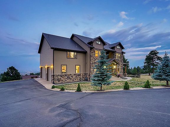 Pictures and words cannot accurately express the awe inspiring feeling of the unobstructed City and mountain views from this beautiful home! Over three and a half acres of land with a perfect setting to enjoy the views of sunsets, wildlife (elk/deer) and city lights every day and night. Biking and hiking trails are very close and you are a quick drive to Golden or Downtown Denver, but you feel like you are in your own world. Everyday you will enjoy views from your expansive master suite with dual walk in closets and sitting area, the large deck, the covered and private hot tub (included) and from just about every other part of this home. Enjoy the peace and sound of the custom water feature that wraps around the home from the office patio to the back deck. There are too many amazing features to list, but you will enjoy a true chef's kitchen with two sinks, large island, huge pantry, new quartz countertops, new Viking double oven, new LED lighting, newer refrigerator with programmable drawers. This home has it all including 4 large bedrooms each with en-suite baths and walk-in closets, a walk out basement with open entertainment/rec room, large attached 3 car garage, huge detached toy garage and storage shed. A great work from home situation here with high speed internet access, a large main floor office and private patio area. The home was built the right way with 2x6 exterior walls, higher insulation, exterior stone and Hardie board, a metal shake roof with lifetime warranty, Low-E Andersen windows, and one of the best features owned solar panels that keep the utility bills amazingly low (yearly cost near what most houses this size would pay monthly). Central vacuum, Hunter Douglas blinds, All this and 15 minutes to downtown Golden, easy access to Denver, I-70 but peaceful and quiet escape with no HOA. This is your mountain dream living with great access to the best of Denver and the mountains.