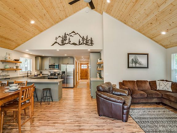Discover this NEARLY NEW and FULLY FURNISHED 3 bedroom, 2 bath chalet tucked at the end of a quiet street in the Ponderosa Estates. Interior highlights: The generous open living concept features a spacious and beautifully appointed kitchen, a vaulted living & dining area and a wonderfully expansive/covered sun deck tucked in the pines providing an absolutley seamless in and outdoor living experience. A convenient and airy main level master suite, a 2nd main level bath and two addtional bedrooms tucked upstairs offer ideal private spaces. The terrific community perks include river access, seasonal swimming pool and clubhouse. Make this your idyllllic weekend getaway and proven vacatation rental property!
