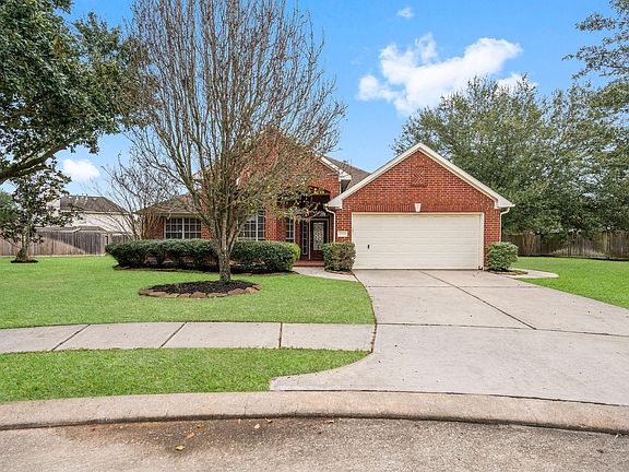 Beautiful one story 4 side brick home on a quiet cul-da-sac! Soaring ceilings + Open concept with kitchen, living, and breakfast area. Large living area with fireplace. Open floor plan + All new interior paint w/ a neutral color, and plenty of windows make the home welcoming and bright. Oversized kitchen with granite countertopss overlooks the living room with gas fireplace. Tile flooring throughout the home. Master bedroom has a large window that overlooks back yard, and en-suite bath with tub, dual sinks, and walk-in closet. Backyard boasts a covered back patio, the perfect place for your grill, and plenty of yard space for entertaining. Wonderful location minutes from Hwy 99, I-45, and the woodlands.