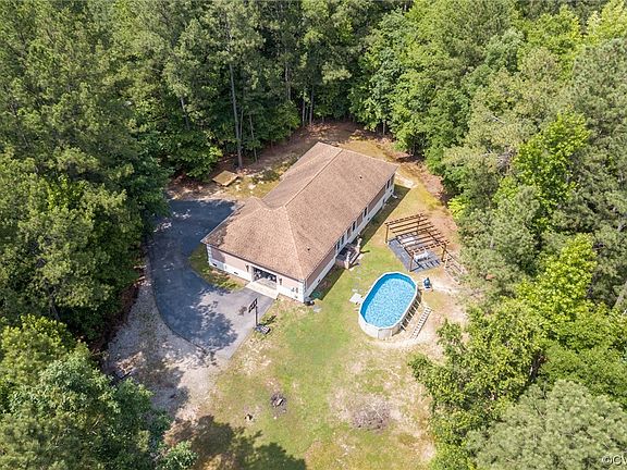 Built in 2006 by owner and contractor this beauty sits on an almost 5 acre lot. New HVAC ! It has three bedrooms; however, there is a 4th that could be used as a bedroom without a closet. The rooms are large with a wide hallway leading to them. There are three full bathrooms conveniently located to all the bedrooms. There is a formal living room as you enter the front door. Outside there is a new above ground pool with platform made from trex. The kitchen has many new appliances and lots of cabinets and a seating area for meals that overlooks the private backyard with pool. Home is convienient to I-85 and is approximately midway between the Petersburg/Ft Gregg Adams area and South Hill. High Speed internet here! This property has a well and town of McKenney sewer.