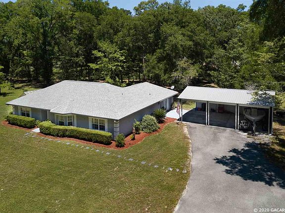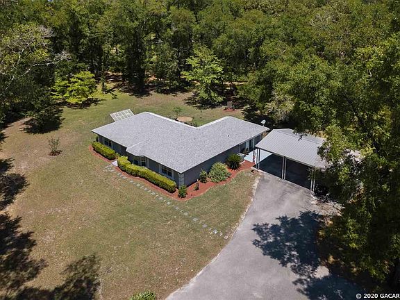 Your own private sanctuary just a mile outside of downtown High Springs! This concrete block home features an open, 2-way split floor plan placed on 2.75 beautifully manicured and completely fenced acres. A gated entrance and tree lined driveway lead you straight to a spacious 3 bay carport. Be ready this hurricane season with the whole home propane generator. Hardwood floors in living areas, vaulted ceilings and stainless appliances are just a few of the many features of this home. A huge 462 sq ft flex room has endless possibilities from mother in-law suite to game room. Master suite with walk-in closet and bathroom boasting a vanity area and tiled shower. French doors from the dining area lead you to a spacious patio and greenhouse. Newer A/C replaced in 2018 and roof in 2008. You need to check this one out!