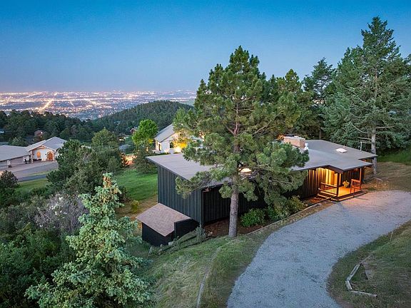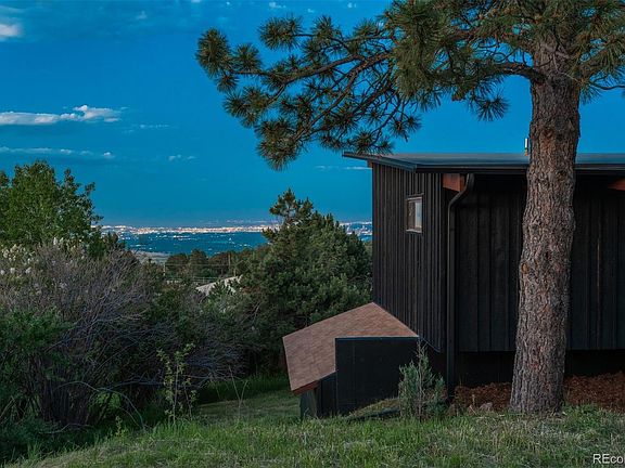 Take advantage of this once in a lifetime opportunity to purchase a rare mid-century modern Lookout Mountain home situated on a world-class view site. The lot alone could be $600,000 or more if vacant. Oriented to Denver's sparkling lights and spectacular sunrises and moonrises, it offers gentle topography, privacy and serenity to support the high-end home you create. Well maintained structure is easy to add on to making it the perfect pallet. Remodeled raised ranch floor plan offers rare main level living and includes newer windows, recently replaced $13,000 boiler, freshly painted interior, 2023 exterior paint with new gutters, remodeled baths with slab stone and glass countertops, newer carpet and updated lighting. Remodeled kitchen has newly refinished hardwood flooring, alder cabinetry, slab granite tops, butcher block bar plus new range and dishwasher. Covered main level wood deck is ideal for entertaining and relaxing. Unwind and soak in the peace and quiet of the mountain setting and enjoy the far-reaching city vistas that continually change as the weather and cloud cover shifts. Spacious living room has a wall of east-facing glass to showcase the breath-taking views. Enjoy crackling fires on a snowy night in the two wood-burning brick surround fireplaces located in the kitchen and the walk-out level family room (double sided). The property with its large grassy backyard and charming brick patio plus a hedge of lilacs for privacy is a canvas for your creative landscape design. "Lifetime" membrane roof. 30 minutes to downtown Denver, 40 minutes to D.I.A., 35 minutes to Loveland ski area and a quick drive to Golden and Evergreen where a variety of restaurants, grocery and boutique shops await! Multiple recreational opportunities are just out the door including Apex Park and Lariat Loop trail systems. Mt. Vernon Country Club offers tennis, pickleball, pools and fine dining. This prime location is a fabulous opportunity at a price that may not be seen again.