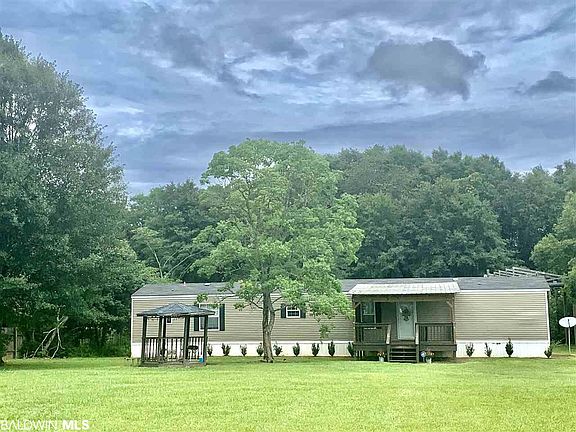 Are you looking for a piece of UNRESTRICTED property? A place to live and play? Take a look at this 2014 mobile home on 3 acres. Walk in to an open kitchen and living room and a great split bedroom plan. Kitchen has a large island and eat in area. Beautiful cabinets and detail, complete with built-in bookshelves. Master bedroom offers a bath with separate shower, garden tub, and walk-in closet. The property has tons of potential. The lot is 131.8 wide and 1002 feet deep. Mature trees and a beautiful green front yard. Lot also offers an option to add an additional home. Utilities are already in place. Income potential also! This could also be a perfect set up for a small mobile home park. The back of the property is in the process of being somewhat cleared and the barn poles and trusses will be removed within the next few weeks. Also Bengston Road is already in the processed to be paved by the county. Just off the Baldwin Beach Express. Convenient to the beach, Pensacola & Mobile