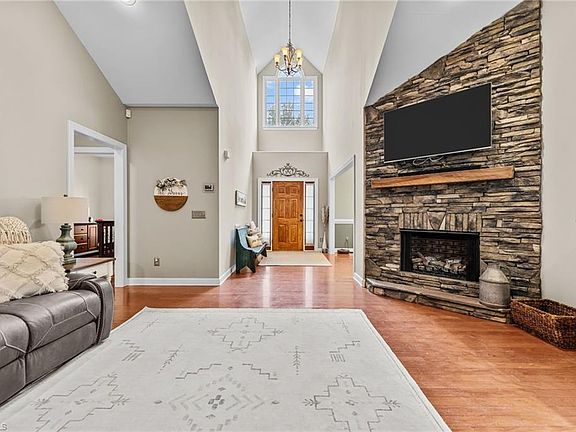 Beautiful 3000 sq ft custom build brick home in Hollowridge Estates & Randleman school district on almost acre lot. With the beloved rocking chair front porch & inside offering semi open concept & split bdrm floor plan w/ 3bdrms, 2 bath, office/flex room on main level & bonus room w/ full ba over garage. As you walk in take note of the high foyer ceilings that flows into the living room w/ breathtaking stone gas fireplace! Kitchen is spacious w/ plenty of cabinet & counter space featuring granite & counter height eat at bar, appliances to convey. The sunroom, absolutely perfection w/ accent wood wall. Primary massive w/ large en-suite w/ soaking tub & separate shower. Spacious hallway coming in from garage & oversized laundry w/ storage & utility sink. Other side of home has 2 bdrms, full ba & flex room. Stroll upstairs & find large bonus room w/ full ba. Backyard another dream, beautiful brick patio & large flat yard space. Proximity is amazing, close to bypass. HVAC approx 7 yrs old