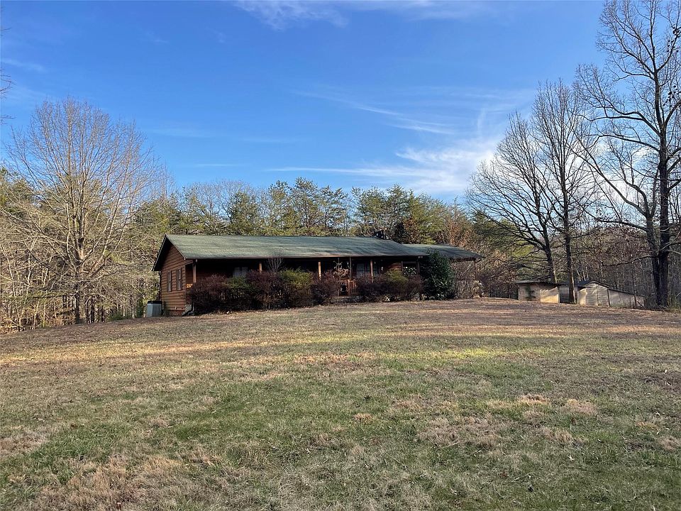 Cedar sided, stick built home built in 1987 with large front yard area and view of mountains in front. The house is on 39.3 acres of land that features a small creek on the west side and the Big Camp Creek on the south side. The creek in the back is at the low level of the acreage and is approximately 850 feet in length across the property. Across the creek is inclined up and is approximately 240 feet above the creek level at the back of the property. The wooded area still has a lot of big hardwoods, but it was thinned out about 10 years ago. Would make a great hunting or recreational get away or also a full time residence. The house has a primary bedroom with it's own bathroom and has a sliding door opening to a 10 X 12 wooden deck with steps off of it. There is second bedroom and a hall bathroom. House has a good sized living area featuring a rock faced fireplace with propane fueled gas logs. Kitchen is basic but all appliances stay. Most of furnishings could possibly stay.