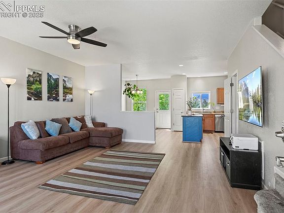 Step into comfort and style in this beautifully refreshed 2-bedroom, 3-bath townhome featuring fresh paint, new flooring, and a modern open-concept layout that seamlessly connects the living room and kitchen—perfect for everyday living and entertaining. Upstairs, you'll find a spacious primary bedroom complete with a walk-in closet and a private ensuite bathroom, offering the perfect place to unwind at the end of the day. Enjoy sunny Colorado days in the huge nearby park, ideal for relaxing, picnicking, or soaking in the gorgeous Front Range views. Conveniently located near Peterson Space Force Base, Schriever Space Force Base, Fort Carson, and the Amazon Warehouse, this home is perfect for those seeking comfort, convenience, and community. Whether you're looking to invest, downsize, or simplify, this turnkey home is ready for you—schedule your showing today!