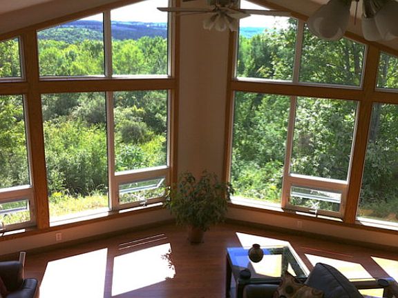 Contemporary Flair with spectacular views of the valley from the floor to ceiling wall of windows in the great room. This 4 bedrm, 3 full bath home, on over 3 acres gives you all the privacy you want, yet is only minutes from Downtown Corning. Three car garage, lots of deck space and gourmet kitchen are all features that will make you feel right at home. The radiant floor heat, found even in the owners' shower is so welcoming. The Owners' suite enjoys another fabulous deck with extraordinary views. Two bedrms on the main level and two bedrms on the lower level will appeal to many.