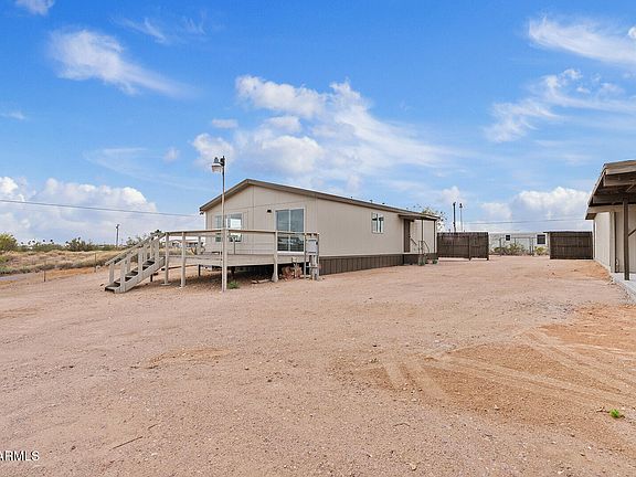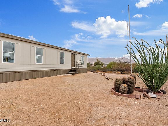 Welcome to 2152 E 14th Ave in Apache Junction, a thoughtfully remodeled manufactured home (1,200sqft) w/ detached casita ( additional 1,200sqft)on over an acre lot, offering open-concept living w/ 3 bedrooms & 2 bathrooms. Step inside to find brand new luxury vinyl plank flooring throughout, complemented by crisp white cabinetry w/ stylish brass hardware. Designer light fixtures, plumbing fixtures, and tile bring a modern, elevated feel to every corner. Enjoy outdoor living on the spacious patio deck, where breathtaking views of the Superstition Mountains provide the perfect backdrop for morning coffee or evening relaxation. This property also boasts a massive, detached casita/shop w/ endless possibilities—ideal for a guest suite, workspace, hobby studio, or rental income. The detached living quarters includes a generous open area, a separate bedroom or office a full bathroom w/ a shower, & a large walk-in closet or storage room. A covered patio extends the livable space, perfect for entertaining or unwinding in the shade. Don't miss this unique opportunity to own a versatile and beautifully upgraded home in a picturesque desert setting!