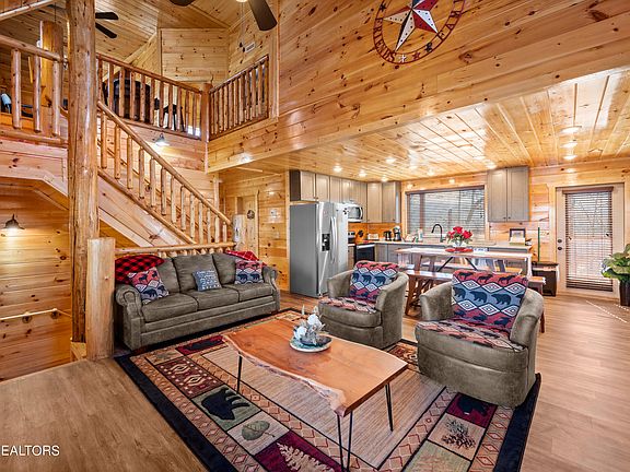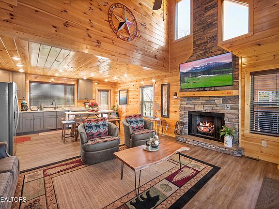 This cabin is Swimming In Views! Beautiful 4 bedroom, 4 bathroom pool cabin conveniently located half way between Pigeon Forge and Gatlinburg, right off the spur in Settlers Ridge and has rental projections from 3 different management companies as high as $190,000 per year! On the main level, you have an open floor plan with a floor-to-ceiling gas fireplace in the great room, and large windows creating a warm & welcoming ambiance. Also located on the main level is the first bedroom, the kitchen & dining area, and the theater room! Just up the stairs is the game room, equipped with arcade games and a poker table, as well as the second and third bedrooms. The bottom level of the cabin unveils the private indoor pool room, a hot tub out on the covered deck & a large forth bedroom with two futons for added sleeping space. Embrace the beauty of the Smoky Mountains from the outdoor fire-pit area or from either of three spacious decks! This cabin is being sold furnished and turnkey! Schedule your showing today!