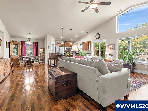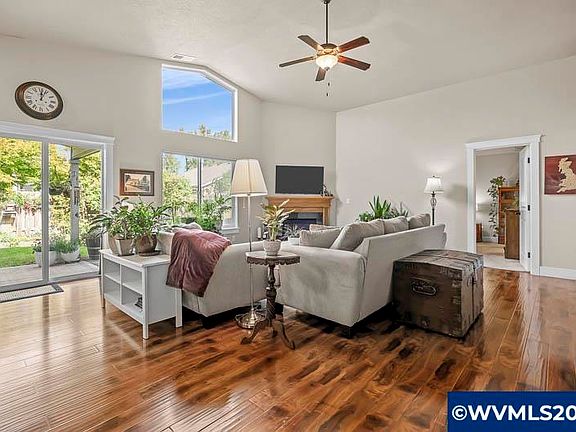 Beautifully designed 1600 sq ft home, with a spacious great room with vaulted ceilings and big windows. Kitchen features custom cabinets, an island, pantry, and stainless steel appliances, opening to a cozy living room w/ a gas fireplace. Primary bedroom has an en suite bath and large walk-in closet. Enjoy a fully fenced backyard w/ beautiful landscaping and an underground sprinkler system. Solar panels for energy savings! No HOA! Located in a desirable S. Salem neighborhood convenient to downtown.