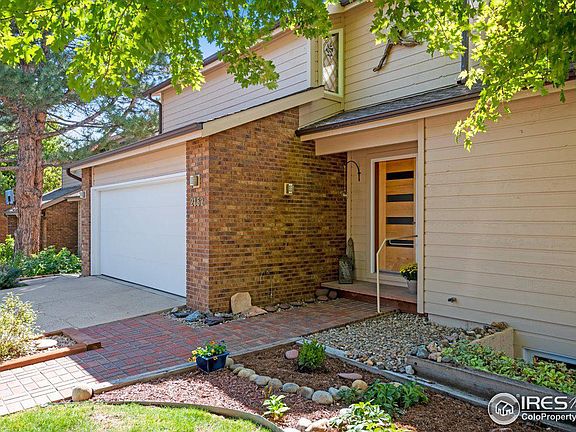 Welcome to this immaculately maintained home conveniently located in the Heritage Meadows neighborhood. The property sits on a quiet cul-de-sac with mature trees, faces south and has a passive solar design plus an owned PV system. Enjoy the home's comfortable, contemporary living space with wood beams, interesting architecture at the entrance, and room to entertain both indoors and out. With a warmth provided by natural wood trim and wood floors on two levels, the floor plan flows easily from the entrance to the living spaces. Every detail of the home has been thoughtfully maintained, from the gourmet eat-in kitchen to the refinished doors and trim on the main and upper levels and newer European windows. The gourmet kitchen features newer stainless steel appliances and features both an island and eat-in kitchen. A bright sunroom off the kitchen connects to a landscaped, fully fenced-in private paradise. The open loft space on the second floor is perfect for practicing yoga or as an extra study. Privacy and quiet with the convenience of being close to shopping and restaurants is inherent in this established community. HOA amenities include a pool, recreation center, tennis court, and year around hot tub just steps from your front door.