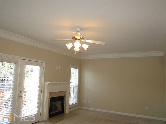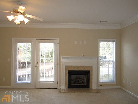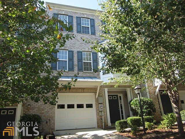 New Interior Paint! 3 Story Twnhm with 1 Car Garage - Walk to the Mall of GA, parks and trails! The living room offers a cozy frplc w/french doors to a PRIVATE DECK. Step off the deck to a grassy area for children or animals to play. Bright kitchen with light stained cabinets & granite look countertops. HARDWOODS and TILE on the main level! Trey ceilings, dbl vanities, garden tub and stall shower in the MASTER SUITE.