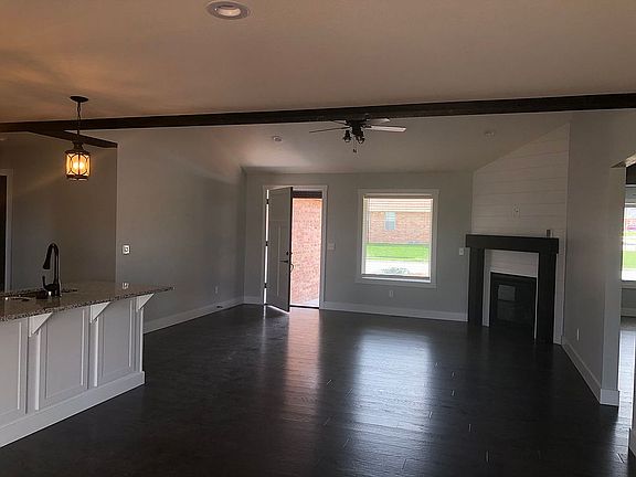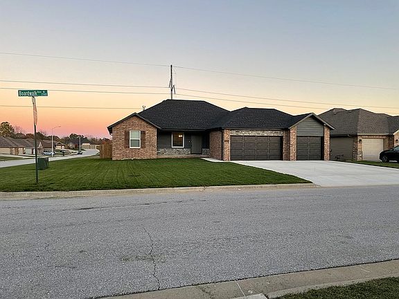 New in Hickory/Glendale schls...near Hwy 65/I-44 .. 3 car gar,3 BR appr 1670 SF living area with split bedroom plan.Includes SODded, IRRIGated, FENCED back yard!Engineered hardwood thru liv/din/kit/entry.Granite through out, custom white cabinetry.Island and pantry in the kitchen, covered deck or patio, gas log fireplace and very open floorplan. Builder is including faux-wooden white blinds, and matching refrigerator in the kitchen.Natural gas, City water, sewer and Highspeed internet available..Yard extends beyond the fence..All City Utilities of Springfield.