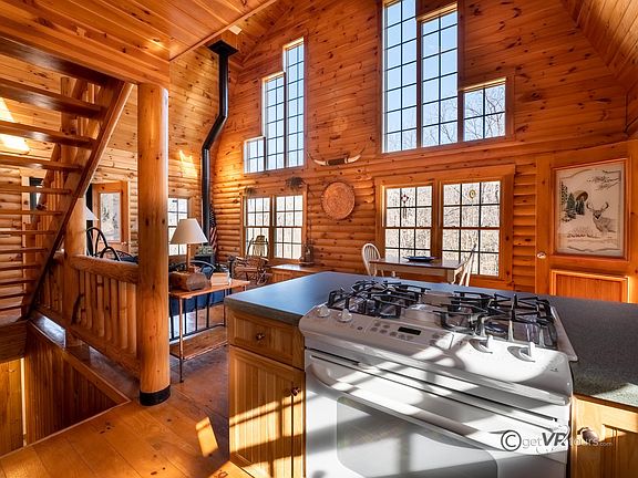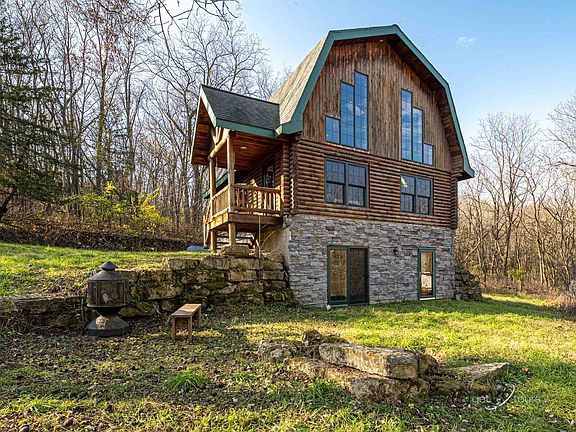 Log Home on acreage for Sale, Elizabeth, IL 61028. Log Home at 2152 N Morley Road, Elizabeth, IL 61028, with large shed situated on 14 acres for sale. Looking for a remote wooded setting that is a minute from Morley Road. This log home built in 2005, is nestled on 14 wooded acres, with a long private drive, that offers two bedrooms, one located on the main level and the other a loft style bedroom, a kitchen and dining room combination and a open floor design with a living room that has a wood-burning stove. A full bathroom with a tub and a shower, services the main & upper-level areas. The front door has a covered porch area and there is one off the rear of home that offers you ease to the back yard. An abundance of windows allows beaming natural light in to fill the rooms. Upstairs is the loft style bedroom that overlooks the kitchen, dining room and living areas. The lower level offers a spacious family room that has a patio slider and a door that leads out to the side of the home. There is an extra room that could be used to your ideas. Another full bath with a stand-up shower is located in the lower level. Home has central ac, propane gas forced furnace and on-demand hot water heater. Seller is offering a 1-year home warranty with septic coverage to new owners. stackable washer does not work and will be removed by closing. There will be some personal property that will be left with the home and some will be taken by the family. Aerial is estimated boundary lines and not a survey. There is a survey on the dining room table to view. Square footages and Room Dimensions are approximates.
