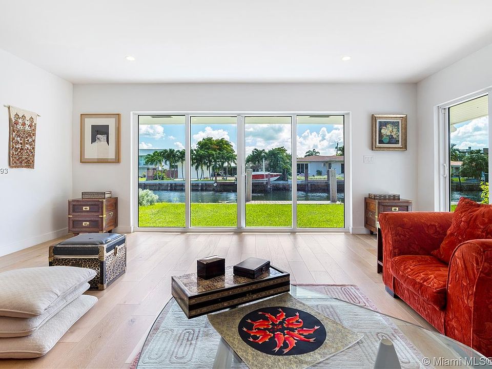 WON'T LAST, huge 14,063 lot, Renovated, Waterfront in San Souci Estates. Fully upgraded interiors with high ceilings. Spacious home with Formal Living Room, Formal Dining Room, Den, dedicated walk-in Laundry room with service entrance, and Chef Kitchen. Open floor plan with Lots of natural light thanks to the many impact glass windows throughout the home. Master Bedroom has sliding glass doors that open to the water with walk-in closet. 113' feet on the water to park your dream yacht open Bay with no fixed bridges. Near Bal Harbour shops, the Beach, and Whole Foods.