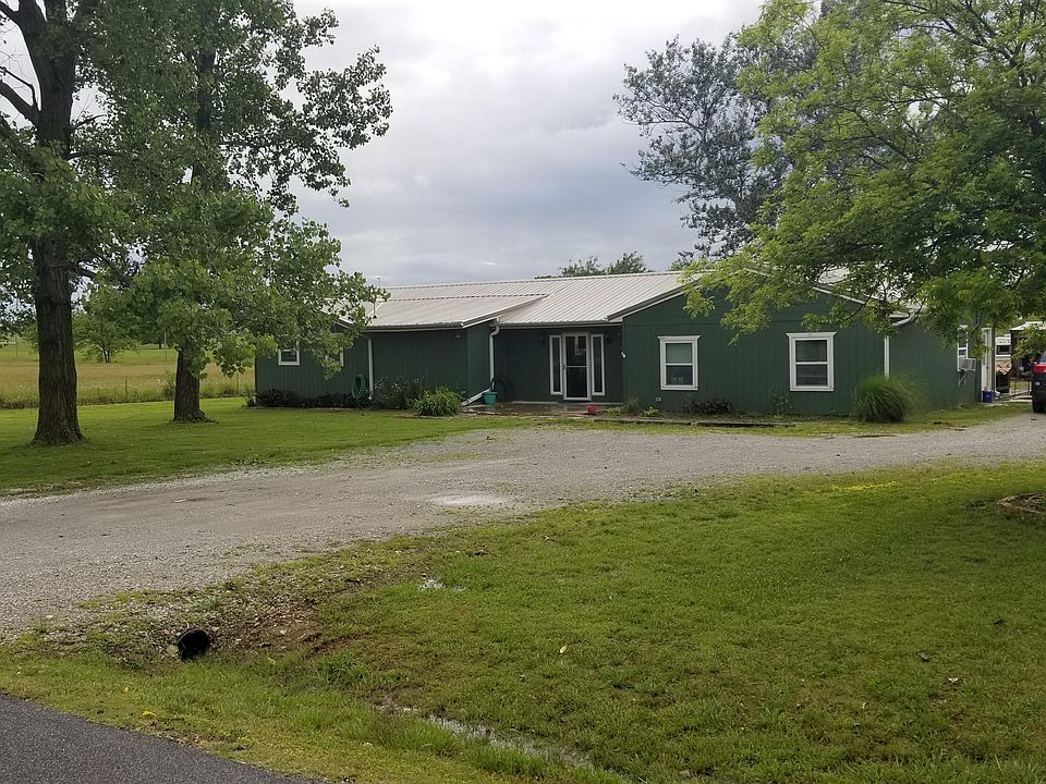 4 Bedroom home with 2.5 baths, country kitchen, spacious living room with fireplace. Nice patio out back, with a 12 person storm shelter. Detached shop/garage has a cellar inside. Level grounds. Country living, yet close to town. Spacious master suite with a gym and huge closet.