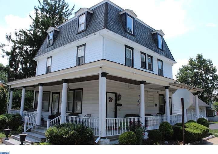 Large Duplex with old world charm ready for an owner occupant looking for additional income to help with the mortgage or a savvy investor. Corner property with a beautiful wrap around porch. Located in Abington Township, close to train, bus and major routes, shopping, hospital and colleges. First floor has large living room with built in seating under the bay window. Eat in kitchen with mud room. Dining room, office/den with powder room. Second floor has 4 bedrooms with loads of closet space and an updated hall bath. Full finished basement, and central air. Third floor offers a rented unit ($875)with two large bedrooms, full kitchen with dishwasher and garbage disposal, living room, hall bath and washer and dryer. Window a/c's. In addition there are 3 garages with loft and long term rentals at $450 per month. Replacement windows. Large yard and plenty of parking. Make your appointment today!