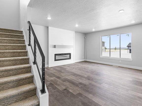 With a stylish exterior and functional design, this home is a charmer. Off the main entry you'll discover a flex room and stairs leading to all the bedrooms upstairs. The main floor includes a large great room, dining, kitchen, and mudroom with a half bath. The kitchen and bathrooms feature quartz countertops. Gorgeous fireplace with shiplap wall in the main living room. Upstairs hosts a spacious loft area, laundry room, two bedrooms and the owner's suite with an owner's bathroom and large walk-in closet. With a total of 3 bedrooms and 2.5 baths, and an unfinished basement to add an additional 3 bedrooms, bathroom, and family room.In the beautiful community of Sunrise Ranch in Mapleton, UT. This community is in a central location and is a perfect place to call home. Enjoy stunning mountains to the east and Utah Lake to the west. This community gives the feeling of rural seclusion while located only minutes from shopping and I-15.