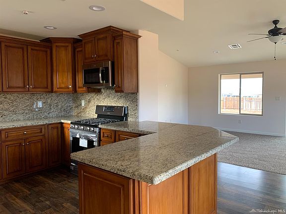 BRAND spankin' new and ready for you! This RARE find with four bedrooms and two baths is almost signed off by the county and then we can close! Granite Counters, stainless steel appliances, laminate flooring and carpeting and a delightful covered patio for those summer bar-b-ques! The built in bar has a wine rack, storage and granite counters, while the hall offers two linen closest for ample storage of all the necessities. The open great room concept offers so many ways to arrange your furniture and has access to the covered patio and rear yard. The two car garage has washer/dryer hook ups including gas (propane) or electric. Refrigerator to be sold separately. Home is plumbed for A/C but it is not installed.