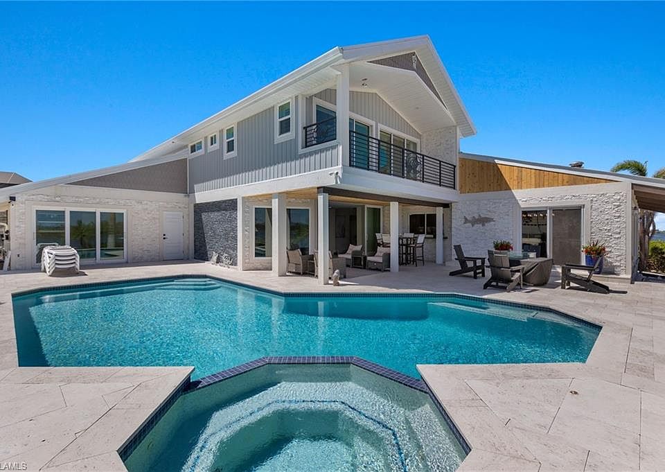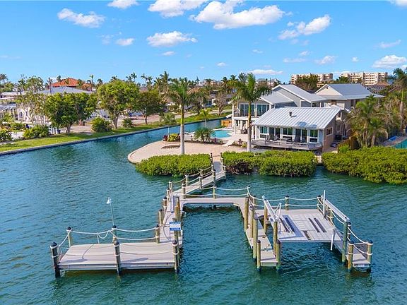MOVE IN READY! BAYFRONT FMB. A BIG BOATER'S DREAM HOME featuring astounding 220 ft+ of waterfront! Offering 4 Beds with Ensuite baths + Flex/5th bedroom + Pool Bath. This home is perfect for welcoming Big families & entertaining large events. Panoramic views of beautiful Estero Bay from your Waterfront Estate home here on Fort Myers Beach. Open Concept Kitchen & Dining areas & Florida room opening to the Bay, & Living room that flows into the Pool deck. Waterfront living at its finest! The Main dock stretches out into the Bay & has a Captains Walk with 2 docks. There is also a Canal side Boat slip. Inside the welcoming entrance, you will be astonished with the openness of the entire home, with floor to ceiling windows throughout, drawing you to the pool/hot tub and the amazing smooth waters of the bay. The Master Ensuite bedroom offers relaxing Bay & Pool views from the 2nd floor & a private balcony to enjoy watching the Boats. 2nd floor also has a Guest Ensuite. The main floor boast 2 additional beds/baths plus flex/5th bedroom. An easy stroll to the Beach to enjoy Dreamy Sunsets. Renovation completed, with NEW Flooring, NEW Kitchen & NEW Furniture. Photos updated as of 3/16/23