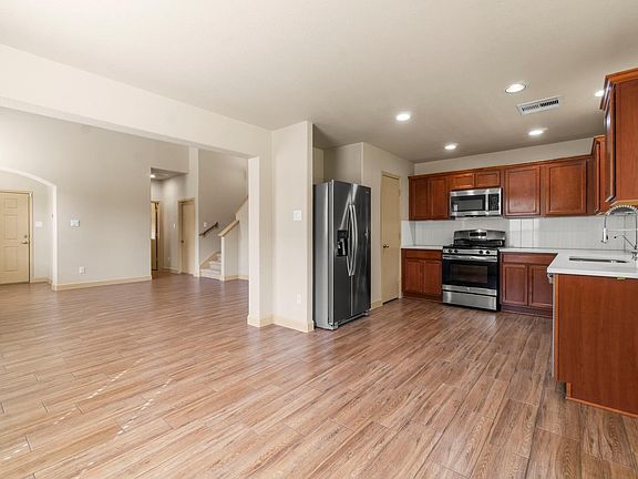 This pristine property is perfect for proud tenants! The entire residence is impeccably crisp and clean! An arched entryway leads you to your sanctuary. The spacious living area with high ceilings is central to all other spaces. Wood-like tile flooring covers the entire first floor! Kitchen has been updated with new countertops and backsplash and features a gas range and refrigerator included! Primary bedroom, half bath, and laundry room are conveniently located downstairs. You'll enjoy a gameroom, 2 secondary bedrooms, and a full bath upstairs. All carpet is NEW! Entire interior recently painted! Double pane windows with detailed trim and 2 in. faux wood blinds throughout. Sizeable backyard with large covered patio w/ceiling fans and no rear neighbors! Automatic sprinkler system for your convenience. Quick and easy access to 99, the Grand Parkway, I-45, and shopping! Don't delay in seeing it today!