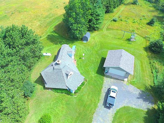 This partial berm home offers 2 bedrooms and 1.5 bathrooms, on two levels, with a massive rock fireplace in the living room, all on 40 beautiful acres of land within a couple minutes of Houghton. This is 40 ACRES within 5 minutes of Houghton, on a year round road with views toward the Quincy Mine! The eat in kitchen flows right into the living room, and it has a sun-porch off the living room with a "hobbit" style custom door. The larger master bedroom upstairs has a half bath in it. The seller added a detached 24x24 two-car garage, with new 200 amp main electric service to the property. The home has a 100 amp electric subpanel. Other property improvements include dramatically expanding the pond in the SE corner of the property. The pond is huge, wraps around a point, and is clear water the seller has used as a family swimming hole. The property is a 40 acre former pasture that offers a nice view toward Ripley and Dollar Bay from slightly higher ground. A new owner could live in the existing house while building a dream place toward the pond, or drop in a small development of several homes. The parcel has a survey, and the county plows to the driveway of this home.