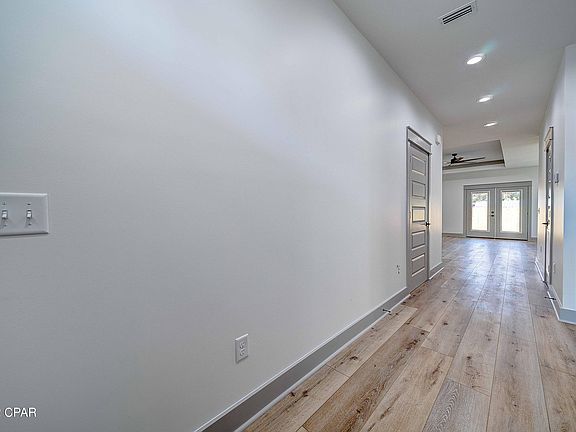 spacious primary bedroom features a large walk-in closet with shelving and a private primary ensuite bathroom. The primary bathroom boasts a beautiful, modern vanity with quarts counters, a walk-in shower with surround tile and an additional showerhead, a private toilet room, and linen shelving. The additional bedrooms share a full guest bathroom featuring a modern vanity with quarts counters, linen shelving, and a shower/tub combo with surround tile. LVP flooring throughout. The backyard has room for a pool! This home is just a short drive to the white sandy beaches and the desirable 30A community including Alys Beach. This home is also just a short drive to Pier Park featuring shopping, an amphitheater, The Grande Theatre, The SkyWheel and plenty of eye-catching restaurants! Check out this new home today!