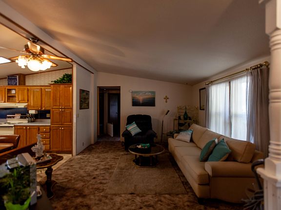 Perfect setting on 2.35 acres with mature trees, privacy and a nice view of green pastures. The manufactured home has a large open floorplan with spacious living and family rooms as well as a huge kitchen with ample storage space and pantry. The large master bedroom also has a sizeable walk-in closet. Continuing with spaciousness, the attached garage is 1,048 sqft. and there's a large covered back porch. The sizeable turnaround driveway also makes great use of the space. Ideal location between Bend and Redmond in the Buena Ventura subdivision - only 10 minutes from the airport. Hard to find - won't last!