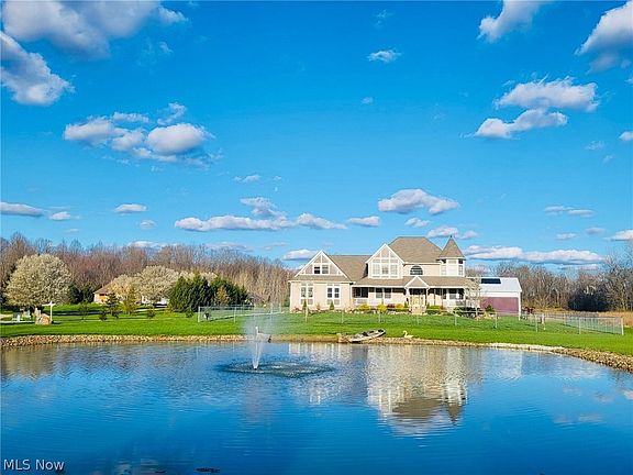 Discover country charm blended with modern luxury at "Tranquil Acres Farm" in Wellington, OH - a sprawling 4,000 sqft equestrian estate that promises more than just a home; it offers a lifestyle. This property stands as a testament to meticulous ownership and thoughtful design inside and out. Boasting 5 bedrooms and 4 bathrooms, this residence is perfect for families, entertainers, and anyone who dreams of living on a farm. The heart of the home, a chef's kitchen, is adorned with granite countertops, providing ample space for culinary exploration, paired with a generous storage and updated modern appliances. Venture outside to be embraced by the tranquility of a picturesque pond, complete with a graceful fountain, setting the stage for peaceful, Tranquil evenings. The wrap-around porch offers front-row seats to this natural spectacle, while the back deck opens up to an equestrian paradise. The property features a fully-equipped 12-stall barn, a vast hay loft accommodating up to 1,000 bales, and an indoor arena designed for the equestrian enthusiast. Pastures sprawl across the landscape, inviting horses to roam freely in their natural habitat. Sustainability meets luxury as this estate is powered by solar energy, and comfort is guaranteed year-round with both gas and wood-burning furnaces. The pride of ownership is evident in every nook of this home, from the large owner’s suite with an ensuite bathroom and walk-in closet to the massive loft area, perfect for a media or playroom. Adding to the home’s allure is a complete, fully finished walk-out basement apartment – an ideal in-law suite or an opportunity for rental income. This estate not only promises a house but a home filled with endless possibilities. The seller is extending a 1-year home warranty. Your dream of owning a hobby farm or horse farm can become a reality, within this magnificent property. Please ask your real estate professional for additional detailed information. Tours are by appointment only.