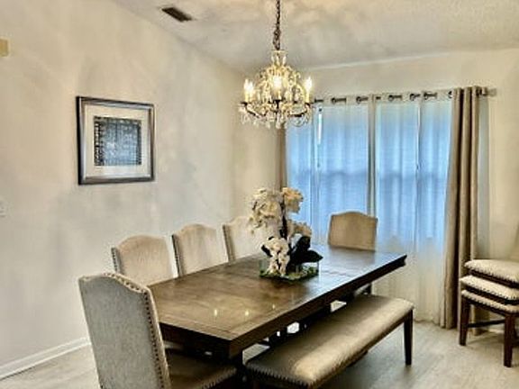 Courtesy of United Realty Group, Inc FURNISHED TURN-KEY spacious 3/2 home with the lovely view on the perfectly maintained private pool. Enjoy relaxing under covered patio with 2 new fans in the privacy of the fully fenced patio. House features vaulted ceilings, formal living room, dining room, family room, new white wood looking flooring throughout. The large Master Bedroom with the sitting area is set apart from the other 2 bedrooms. Walking distance to Wellington's fabulous shopping and restaurants, just minutes to WEF, Polo Club, Wellington Green Mall, 15 min to airport.