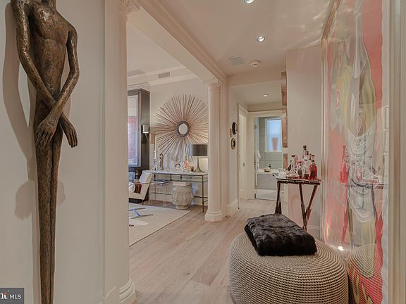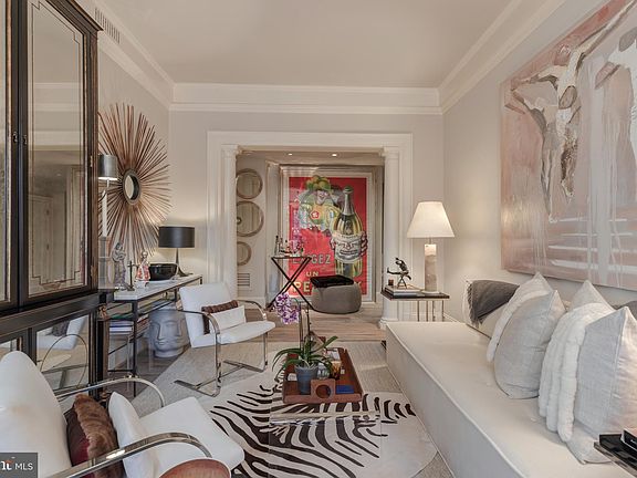 All Open houses have been cancelled. This stunning contemporary condo is in the heart of Kalorama. It boasts 2 bedrooms, 2 bathrooms, and a unique, beautifully mill-worked built-in office (with hidden Miele washer/dryer) within this fabulous apartment that spreads across 1275 square feet of meticulously renovated living space. Luxurious amenities abound, including crown molding, 9-to-11-foot ceilings, plantation shutters, French white oak wooden flooring throughout, built ins, Stereo ceiling speakers throughout, and custom wood vents, all adding an elegant touch to the modern design. The well-appointed kitchen with its high-end custom features-Sub Zero, Miele appliances, and spectacular custom Canadian cabinets-provides an efficient space for cooking and entertaining. The design highlight is a Schonbek black onyx chandelier which graces the tray ceiling. This also has a walk-out balcony with a very special glass/ wood custom 8 ft tall door that provides daylight to the kitchen. The spa-like bathrooms feature glass tiling for a sleek finish. Every detail has been carefully curated, from the customized closets to the unique square Belgium recessed lighting and the gorgeous mid-century Spunick chandelier in the bay window . Another standout feature is the B&B Italia luxurious built-in shelving unit in the 2nd bedroom/den, adding both style and functionality. Additionally, there’s the option for parking space rental conveniently nearby. Dog friendly! Extra storage as well! This condo is conveniently located just minutes from DCA and downtown and steps away from the famous Dupont Farmer’s Market. Residents can enjoy easy access to urban amenities while still having the tranquility of Kalorama. For pet owners, Mitchell Dog Park and Pickleball courts are nearby, providing a perfect spot to meet up with your friends. This condo offers a luxurious living experience in one of Washington DC’s most desirable neighborhoods and buildings, California Court!