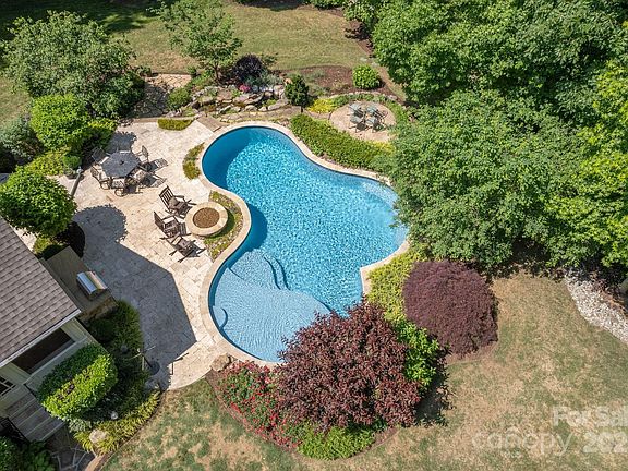 This beautifully designed home with resort-style backyard is tucked in a peaceful, tree-lined setting minutes from Waxhaw & Wesley Chapel! Enjoy your own custom pool, travertine patio, screened-in porch, outdoor kitchen & stone firepit—all surrounded by beautifully landscaped natural areas & a tranquil waterfall pond. Inside, soaring 13’ ceilings, 8’ doors & engineered hardwood floors add elegance throughout the main level. The great room connects seamlessly to a huge kitchen with granite countertops, gas cooktop & a walk-in pantry—perfect for entertaining. The oversized main-level primary suite & dedicated home office offer comfort & flexibility. All the upsatirs bedrooms have walk-in closets & private bathrooms. And, there are two bonus rooms up. A 2-car garage and an additional 1-car garage with loft storage & a custom library ladder provide plenty of space for hobbies or organization. A perfect blend of luxury and functionality -- designed for relaxing, entertaining & truly living!