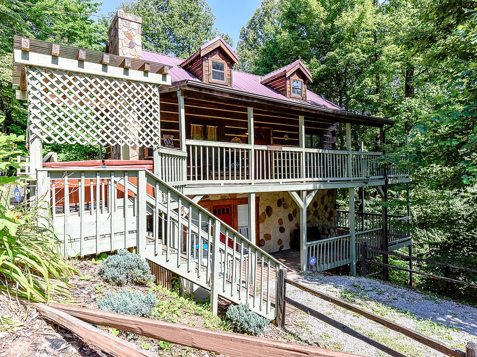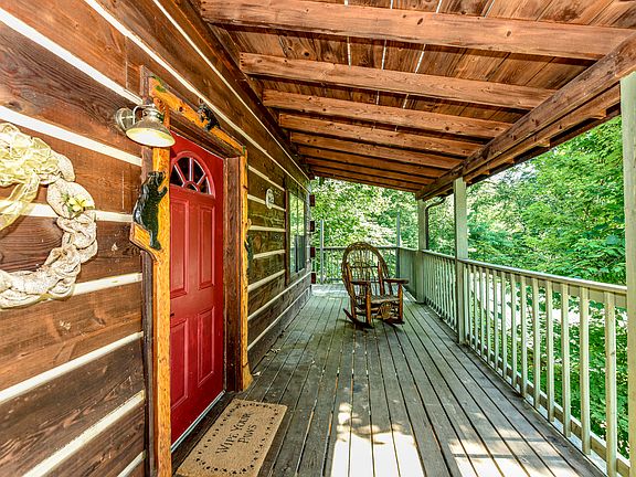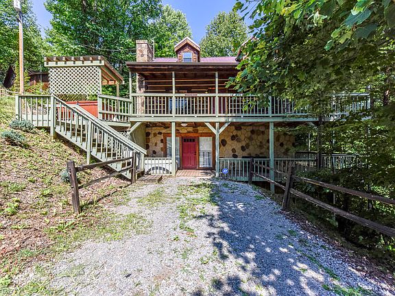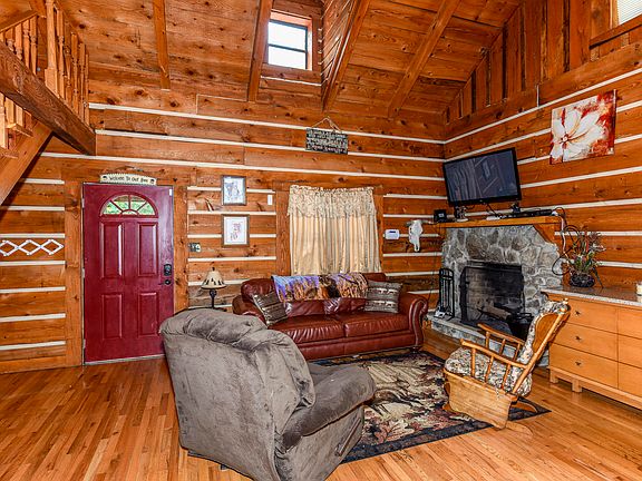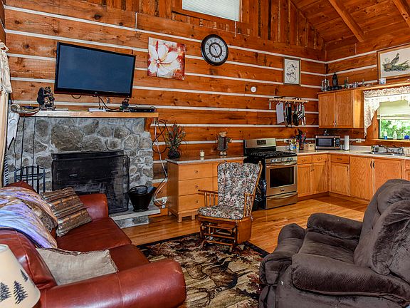 MOTIVATED SELLER!!! Schedule your showing today to see this beautiful log home, and great potential INVESTMENT PROPERTY!!! Cabin has two parking areas and two entrances. Downstairs could easily be used as separate living quarters. Wrap around porch; front and back are covered. There is a hot tub under the covered area. The home will be sold partially furnished. The main level has a combined living room/kitchen, a bedroom and full bath. There are stairs that lead to the loft. The main level also has a wood burning stone fireplace. Downstairs there is a bedroom, laundry area, full bathroom, and a room that could be set up as a den, game room, or bedroom. There is also a stone gas log fireplace downstairs. Cabin is on a one bedroom septic system. Buyer to verify all information.