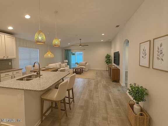Welcome to this charming home in Coastal Oaks of Atlantic Beach! This beautifully maintained residence boasts an open floor plan. The spacious living area seamlessly connects to a modern kitchen featuring sleek countertops and ample cabinetry. Enjoy the tranquility of the private backyard, appropriate for outdoor entertaining or relaxation in the hot tub! Features include a 2-car garage, paver patio with hot tub, home automation lights in the kitchen and living room, as well as a home automation thermostat, and a low-maintenance yard. Located in a sought-after gated community, this property offers convenient access to local amenities, parks, and the beach. Don't miss this opportunity!