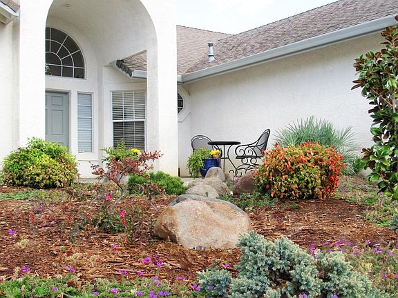 Lovely Gold Hills home beautifully landscaped front & back. 3 bed rm 3 bath + office. Attractive flagstone patio and charming pathways, perfect for relaxing and entertaining. Upgraded custom kitchen cabinets & wet bar, wood flooring, extra concrete fenced parking area, 3 car garage w/ample storage cabinets, new Water Heater, Very well maintained. All positioned in a truly delightful neighborhood